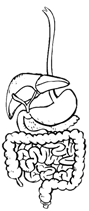 Malgré leur participation lors de la digestion, l’étude de la bouche et de l’œsophage ne sont pas proposées dans ce support par souci de présenter uniquement le contenu du caisson abdominal.