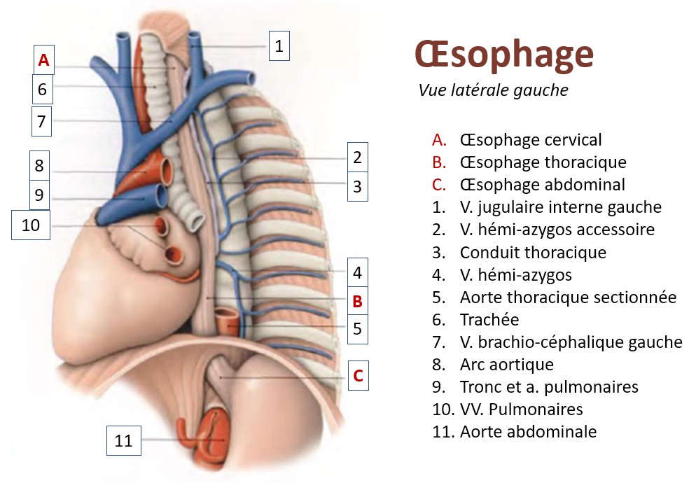 Figure 5.2. Œsophage : vue latérale gauche. Anatomie Clinique – Tome 3 – Pierre KAMINA
