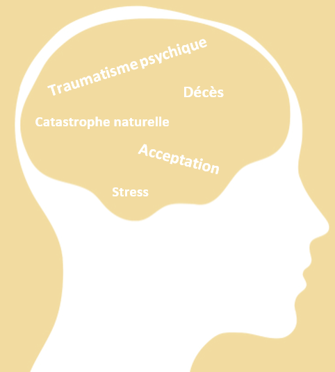 Mots pêle-mêle : traumatisme psychique, décès, catastrophe naturelle, stress, acceptation.