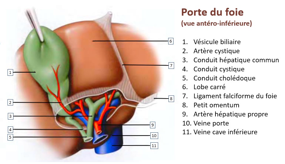 • Face inférieure du foie : la face supérieure de la vésicule est en contact direct avec la face inférieure du foie.